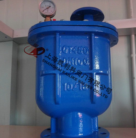 當(dāng)管內(nèi)開始注水時(shí),塞頭停留在開啟位置,進(jìn)行大量排氣,當(dāng)空氣排完時(shí),閥內(nèi)積水浮球被浮起,傳動(dòng)塞頭至關(guān)閉位置,停止大量排氣;當(dāng)管內(nèi)水正常輸送時(shí),如有少量空氣聚集在閥內(nèi)到相當(dāng)程度,閥內(nèi)水位下降,浮球隨之下降,此時(shí)空氣則由小孔排出。當(dāng)抽水機(jī)停止,管內(nèi)水流空時(shí),或遇管內(nèi)產(chǎn)生負(fù)壓時(shí),此時(shí)塞頭開啟,吸入空氣確保管線安全。